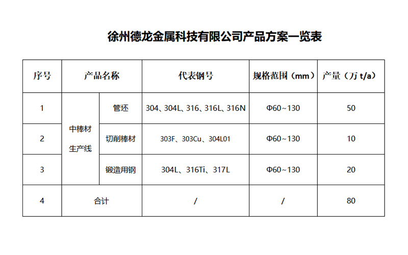 该棒材生产线包括管坯、切削棒材、锻造用钢等,其规格均为Φ60-Φ130。公司产品主要为下游不锈钢钢管企业提供原材料,另外一部分也可以作为机加工材料。项目达产后,日产量可达2500吨,可实现年销售收入100亿元。